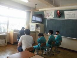 今日の全校集会は、運営は生徒会でリモートにて行いました。内容は、「1年生の校外学習の報告」「2年生の林間学校の報告」「生徒会のいじめ防止サミットの報告」「給食委員会の発表」でした。1年生は技術室より、2年生はPC室より配信しました。給食委員会の発表は、録画を各教室で見ました。全校生徒が集会に参加し、一つになりました。