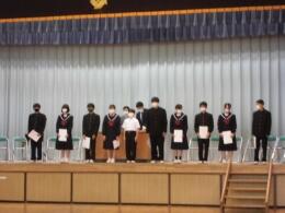 リモートにて、生徒会役員・常任委員長の引継ぎ式と学級委員の任命式が行われました。旧生徒会役員・旧常任委員長の皆さん、これまで、豊四季中学校のために力をつくしてくれてどうもありがとうございました。新役員・新常任委員長の皆さん、しっかりと引き継いで、皆さんの持っている力を最大限発揮して、全校を引っ張ってください。全校のみんなで、より良い豊四季中学校にしていきましょう。