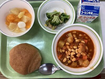 4月25日の給食 投稿日時 : 2023/04/25 豊四季中学校管理者 胚芽パン ポークビーンズ ブロッコリーサラダ 白玉ポンチ {{options.likeCount}} {{options.likeCount}}