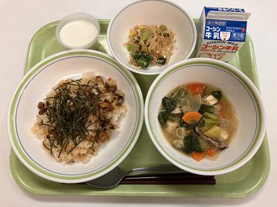 11月22日の給食 鰯の混ぜご飯 投稿日時 : 2024/11/22 豊四季中学校管理者 鰯の混ぜご飯 チンゲン菜のごま和え 千葉の恵汁 かぶのブラマンジェ {{options.likeCount}} {{options.likeCount}}