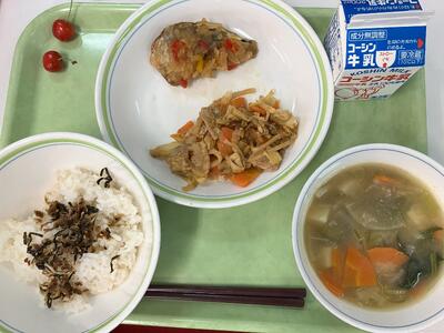 6月19日の給食 投稿日時 : 2024/06/19 豊四季中学校管理者 白飯&手作りふりかけ あじの南蛮漬け 豚肉とキャベツの炒め物 みそけんちん汁 さくらんぼ {{options.likeCount}} {{options.likeCount}}