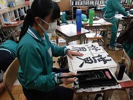 2年生の国語の授業では、書初めの練習をしていました。みんな一文字一文字を丁寧に書いていました。