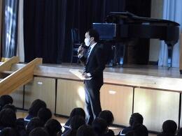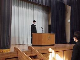2学期の終業式を体育館で行いました。明日からの冬休みには、2学期に頑張った疲れを癒しゆっくりと過ごしましょう。3学期に元気な皆さんに会えることを楽しみにしています。