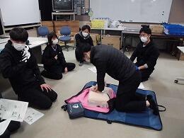 放課後に「エピペン・AEDの使い方」の職員研修を行いました。養護教諭の説明を聞いてしっかり実習しました。