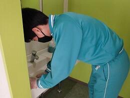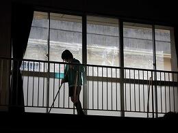 豊四季中学校の掃除の時間は10分間です。限られた時間で、担当の清掃場所を丁寧にきれいにしています。