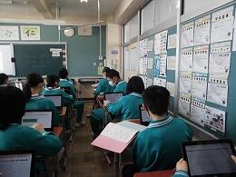 1年生の数学の授業では、タブレットを使用して学習に励んでいました。