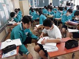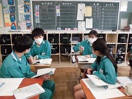3年生は、課題について自分の考えと他の人の考えを、意見交換していました。