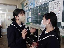 1年生の英語の授業では、学習した英文を活用して会話をしました。
