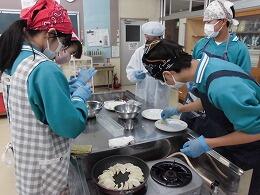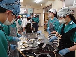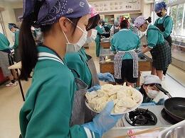 2年生の家庭科の授業では、調理実習をしています。今日は、餃子を作っていました。
