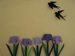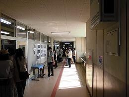 テニスコート前の昇降口には、手作りの掲示物があります。