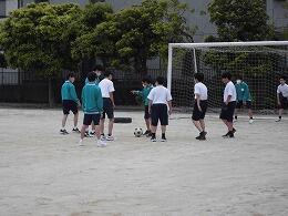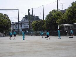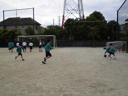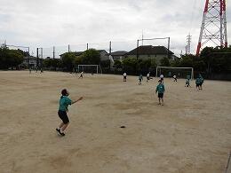 元気に体を動かし、ペアになってボールのパスの練習をしていました。