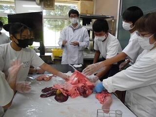 豚の心臓の解剖を行ったり、内臓の観察をすることができました。