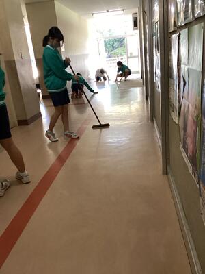 今週と来週は、1,2年生が保護者面談、3年生が三者面談のため、朝清掃を行っています。生徒は、一生懸命に清掃活動に取り組んでいます。