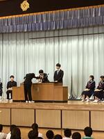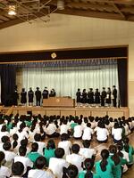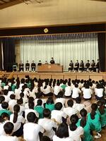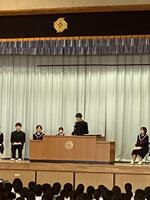 本日4校時に、全校生徒が体育館に集まり、「生徒会役員・委員会委員長」の引継式が行われました。今まで3年生が中心となり、生徒会・委員会を行っていましたが、今後は2年生が中心となり生徒会行事や委員会活動を行っていきます。3年生の皆さん今までありがとうございました。2年生の皆さん、これからの豊四季中学校をよろしくお願いします。