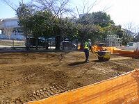 表土を削って良い土に入れ替えています。思った以上に広い範囲が芝生になるようで,完成が楽しみです。
