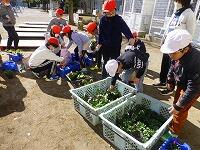 柏の葉公園から,パンジー等の苗をたくさんいただきました。早速3年生が,自分の鉢に植え替えています。