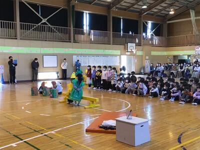 授業参観の学習発表会から、さらに練習を重ね、パワーアップした劇や歌をプレゼントしました。