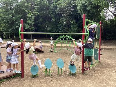 公園にあるものを見つけたり、芝生でクラスレクをしたり、遊具で遊んだりしました。