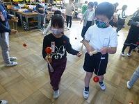 今日は「けん玉」に挑戦です。大皿・小皿に玉を乗せようと,みんな夢中です。とても上手な子がたくさんいて,お互いにコツを教えながら頑張っていました。