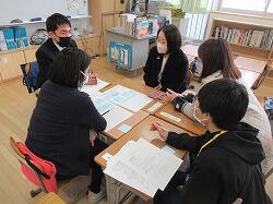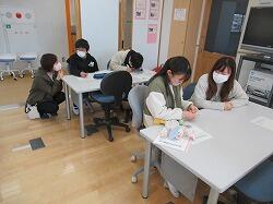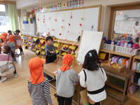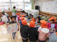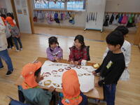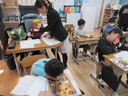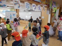 1年生の教室では、土っ子ランドのぷれランドです。保護者の方をお招きしてランドをやり、幼稚園生に対して行うときには気を付けなければならないことを、指摘してもらうぷれランドです。