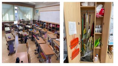 そうじが始まる前から、みんなで力を合わせて今年1年使ってきた道具や机をきれいにしているクラス。