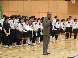 校長先生の伴奏で、「つばさをください」をみんなの夢に向けて、転出する先生方に向けて、合唱しました。