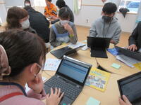2年生の教室では、学区探検で伺った事業所から出てきたオーダーに合わせて、動画を作り直しています。