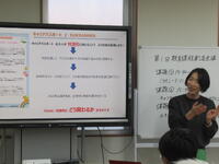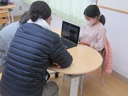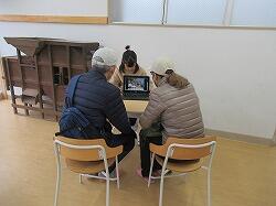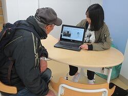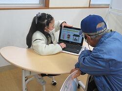 最初に動画を見てもらいました。もう少しいろいろな写真を使ってほしいなあ、画面が早く変わって読めないなあという改善点や、とてもここはよくできているね、すごいなあ、という誉め言葉、しっかりと言われたことを受け止められたかな?
