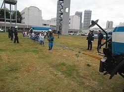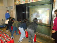 水消火器を使ってまとにあてて消火体験をすることもやりました。実際の時に役立つ体験です。