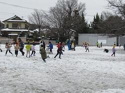 今日は卒業生だけが登校。8時を過ぎた校庭をちょっとよそ行きの洋服に、ランドセルをしっかりと背負った卒業生がやってくる。