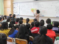 同じ時間帯で、3年生ではヤクルトによる食育「おなか博士になろう」です。食習慣と睡眠など、しっかりとした体をつくっていくためにとても大切なことを教えていただきます。