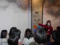 理科室では、1年生が算数の勉強で、水の量を実感しながら学んでいます。