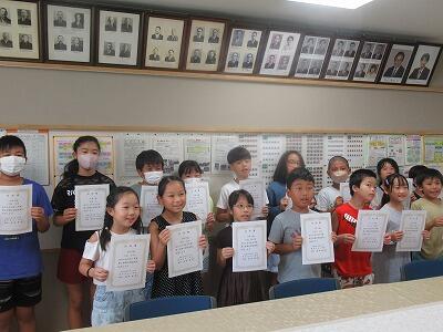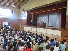 夏休みは普段できないことを 体験する 大切な時間。宿題があるからやるのではなく、自分で考え、やりたいことをやったり、苦手なことに挑戦したり、目標を立てて目標に向かって努力してみることが大切。〇年生の夏休みは一度しかない! 大きく成長する挑戦をしてください。というお話が表彰の後にありました。