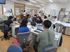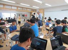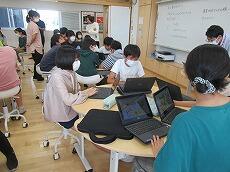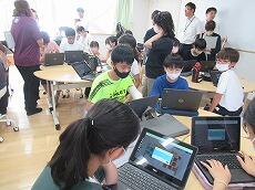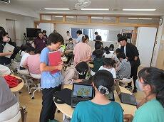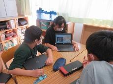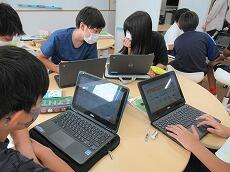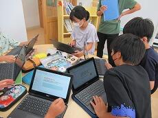 マイクラ部は一番人気で、定員をオーバーして集まっています。今日は、マイクラを使ったことがない子も多いことからマイクラに慣れるためにグループでchromebookを囲んでいます。このchromebookは学校の物にはインストールが許可されなかったので、芝浦工大柏中学高等学校の貸出用のものをお借りしています。今週毎日開かれますから、バーチャル空間が作れるようなプログラム技術を身につけて欲しいですね。
