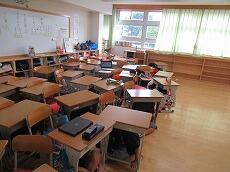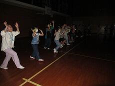 今日は、放課後の第四校舎で、健康体操のみなさんが体操をしています。1時間半ほどの間、健康と美を保つ体操の教室が開かれていました。普段は近隣センターで行っている皆さんですが、都合により使えなくなったために、土小の教室を使っています。今日は2回目です。隣では2階の学童ルームの子供たちが下りてきて、工作をしています。