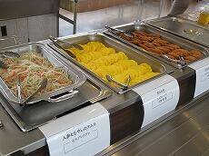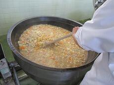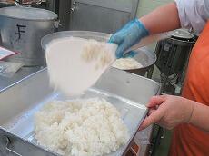火を使い始める10時半から11時頃にかけて、給食室に入っていくと、炊飯コーナー付近は45度、その他の場所も37度という気温の中で、作業をされています。