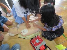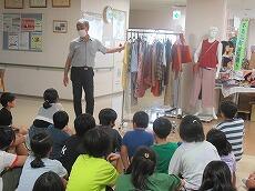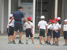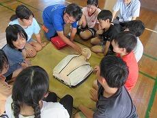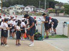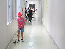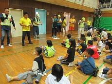 子供たちの事故で多いのは、自転車による事故、飛び出しによる事故です。その事故防止に焦点をあてた講習を行いました。例年は体育館の広い場所を使って行いますが、暑さが基準を超えているために、第四校舎で行いました。