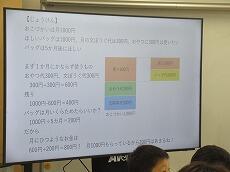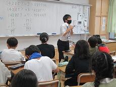 後半は、畳を敷き詰めるとしたらできる?できない?それはどんな風に考えるとよいか・・・ 0って何?0にかけたり、0で割ったりすることは、できるの?できないの?ということを、わかりやすくプレゼンしたり、実際にやってみたりしながら教えてくれました。今日一日だけでしたが、来年もやってくれるそうです。中学生も勉強になったと言ってくれました。