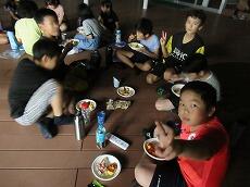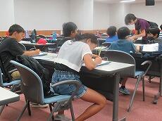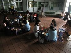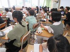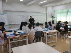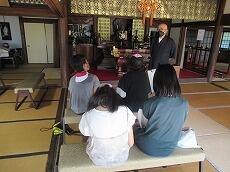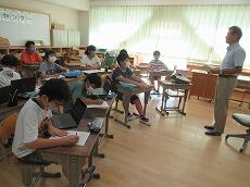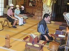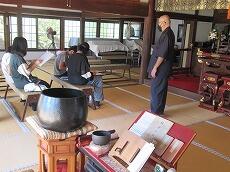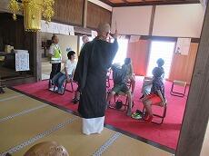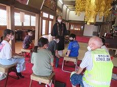 座禅教室は、学校近くの少林寺。今年は8名の参加で人数が絞られていたため、集中力もあがって最初から20分間という長い時間の座禅ができています。本堂に吹いてくる風は、セミの声をのせて少し涼しげに吹いてきます。何も考えないで無になるということが、こんなに難しいことなのですね。じっと自分と向き合う時間ができたかな?