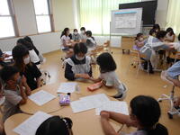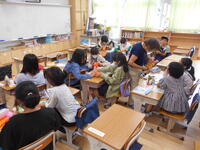 自由研究教室は、実験や観察が中心になりながら進んでいきます。こちらも他校から理科支援員の皆さんが集まって手伝ってくださいます。今日は調べる教室と同じように、テーマを絞り込んでいくことを行っています。高学年の後半は1時間45分とロングの時間を使ってじっくりと取り組んでいきます。高学年にはこういう時間がとても大切ですね。