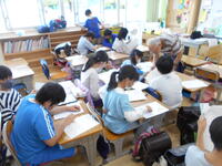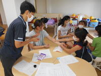 あっという間に1時間が過ぎてしまいました。最後の後片付けもお手伝いをしている子がいます。よほど楽しかったのでしょう。高校生のお姉さんたち、また28日も楽しみにしています。