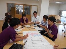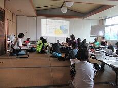 子供たちがいなくなった夏休み1日目は、土小学校のカリキュラムの柱となる、各学年の生活科と総合的な学習の授業について、学年と管理職と学校運営協議会の地域コーディネーターとが、学年のプランについて話し合う、学年戦略会議から始まりました。