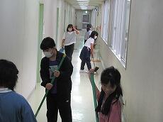 大人の手が入ると、子供たちの力も引き出されて、いつもよりもきれいな仕上がりになっていきます。私も昇降口の窓をきれいにさせてもらいました。背中いっぱいに汗をかきながら、きれいな学校をいつまでもきれいに保つためには、子供と大人の協力が大切だと感じながら、1学期の汚れをみんなで落としました。