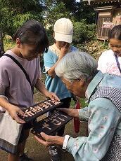 伊藤家のお庭には、自然が豊かな所にしかない植物もたくさんあります。むくろじの木の実から羽子板の羽根に付いている黒い重りになる実を取り出す経験もしました。
