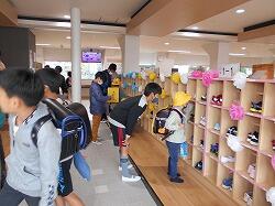 ランドセルの中身を出して、机の中にしまって、ランドセルはロッカーに入れます。