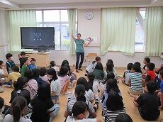 6年生と一緒に授業に参加して、給食も一緒に食べられてました。午後は、4年生に英語でお話したり、読み聞かせをしてくださったりしました。あっという間の一日でしたね。
