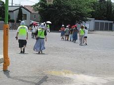 各グループには、保護者の方を中心に見守りボランティアについていただき学校をスタート。どの道を通っていくのかは、子供たちの計画に従っていきます。遠回りをしているなあ・・というグループもありますが、自分たちで決めて行動することが大切。
