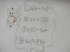 全員がそれぞれのスタイルで取組んでいます。廊下を通りかかった他の学年の先生に、計算の仕方を説明している子もいます。一人で黙々と計算の仕方をノートに書く子、友だち同士で教え合ったり、確認し合ったりする子。