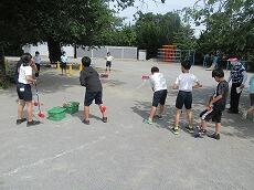 校内の研究会のうち8回は子供たちを給食後に下校をさせて時間をたっぷりと確保して行います。そのために、ダイヤモンドクラブの卓球クラブの方、保護者の方、美里ゴルフの皆さんがご協力をいただき、卓球とバスケットとスナックゴルフの3種目を開催し、今回は35人の子どもたちが、3種目を順番に体験し、2時間たっぷりと過ごしました。