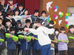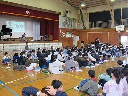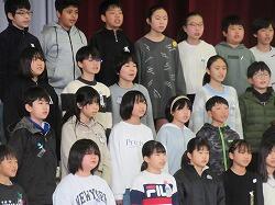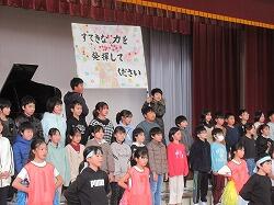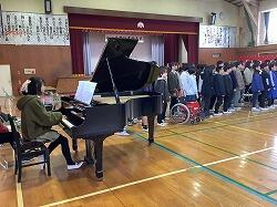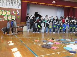 校長先生のお話の中で、サプライズで先生方の合唱も・・・校長先生のピアノと舟橋先生のギターでの伴走で「翼をください」・・・全校の子供たちも一緒に歌い始め、手拍子も入ってみんなで合唱を楽しみながら、6年生を送る会の幕はおりました。